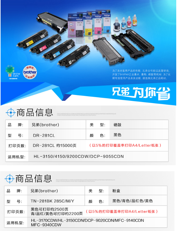 參數(shù) [品牌] 兄弟 [型號(hào)] TN-281/285 原裝硒鼓 [毛重] 1.00KG [產(chǎn)地] 中國(guó) [單位] 支